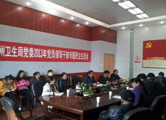 根据迪庆州委工作安排,州卫生局党委于2013年3月1日至4日组织召开了2013年党员领导干部专题民主生活会。州卫生局全体干部职工、州直各医疗卫生单位主要负责人参加了会议。民主生活会邀请到了州纪委第六纪委和兰英副书记到会指导。此次生活会主题为:认真贯彻落实十八届中央政治局关于改进作风密切联系群众的八项规定、省级领导改进工作作风密切联系群众的实施办法和省委常委党内整治生活八条规定。