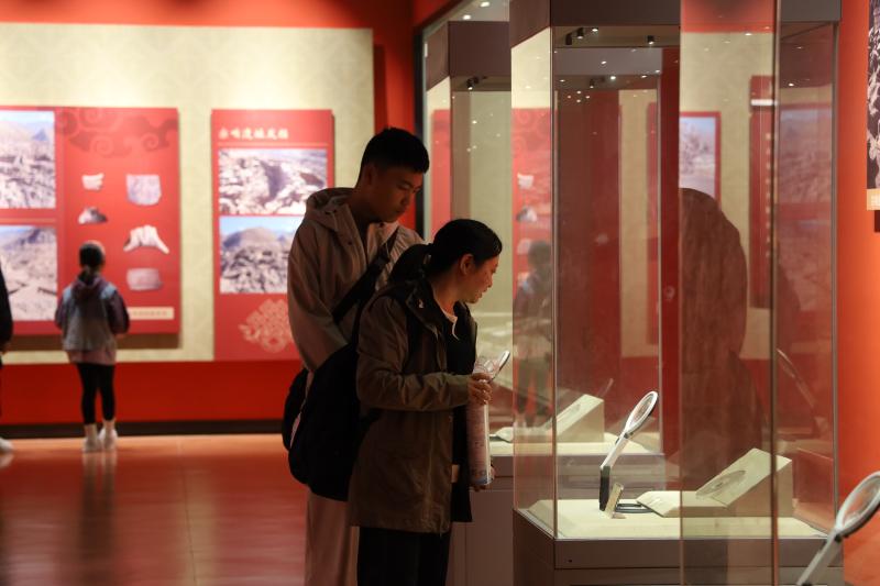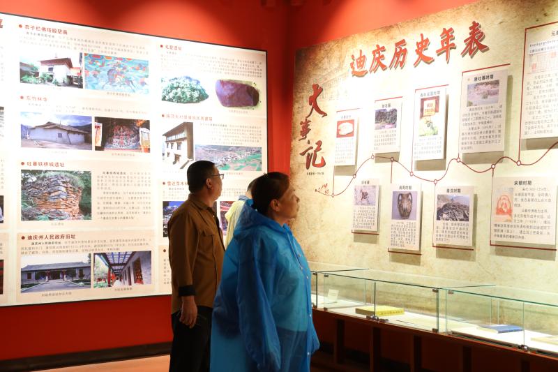 暑假期间,前来迪庆州博物馆参观的游客络绎不绝。丰富的馆藏文物、多彩的民族服饰、完整的文化脉络、生动的历史故事成为了游客了解迪庆的重要窗口。图为游客在州博物馆感受迪庆历史文化魅力。