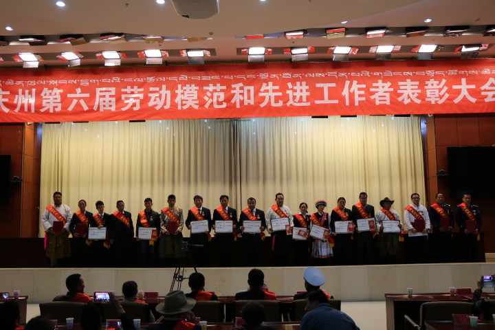 会上,吕兵部长和杨凤喜主席分别宣读了《迪庆藏族自治州人民政府关于表彰迪庆州第六届劳动模范和先进工作者的决定》、《迪庆州总工会关于表彰迪庆州五一劳动奖章的决定》;会议对2014年以来全州劳动模范和先进工作者、五一劳动奖章获得者进行了表彰;劳模代表德钦中学副校长阿宗老师上台发言,分享了在劳动中履行责任,体现价值,展现风采,收获快乐的感受,向劳动者发出了奉献、担当、引领的倡议。