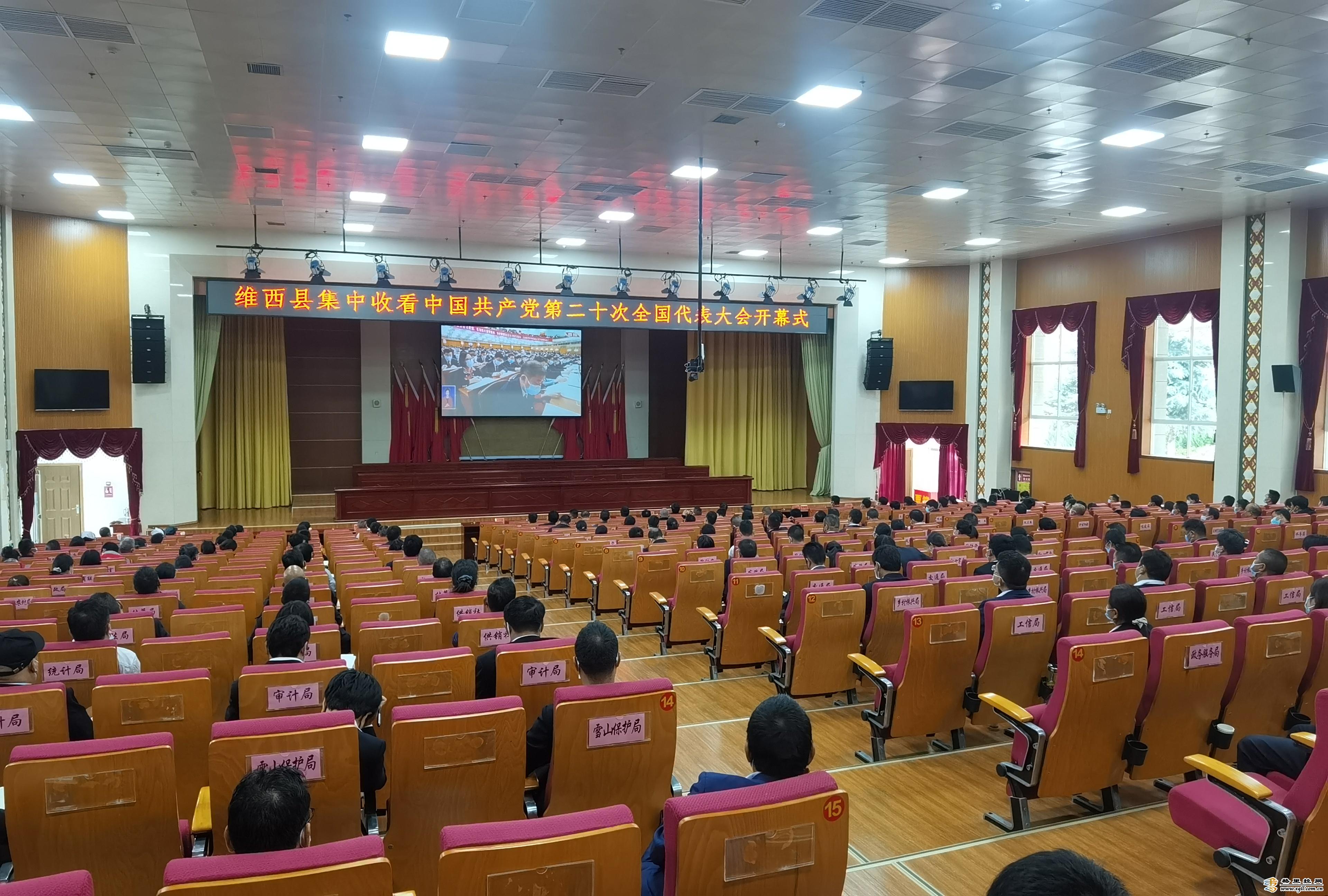 维西县党员干部集中在行政中心报告厅观看开幕会盛况。