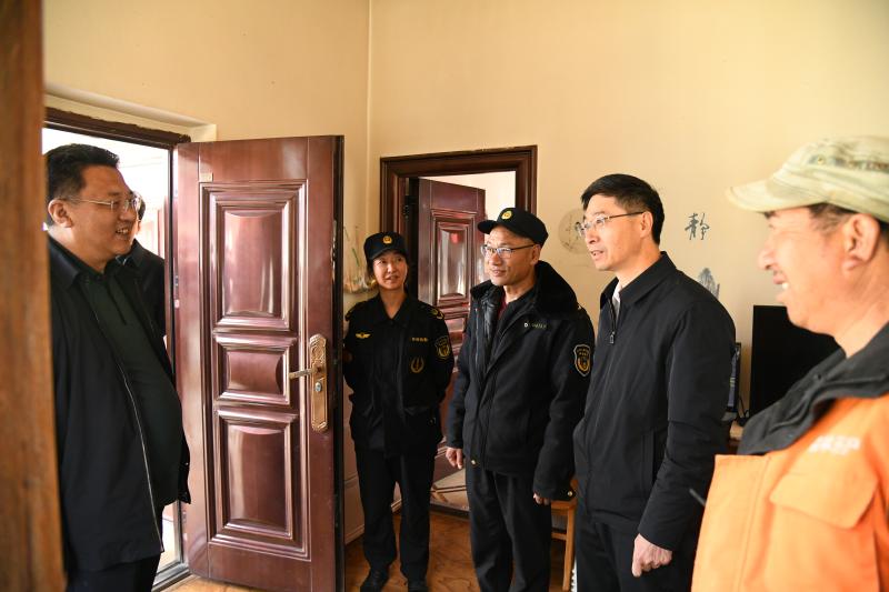 在德吉林寺检查站,罗朝峰与执勤人员亲切交谈,详细了解每天进山人数、造册登记、流动人员管理等情况。