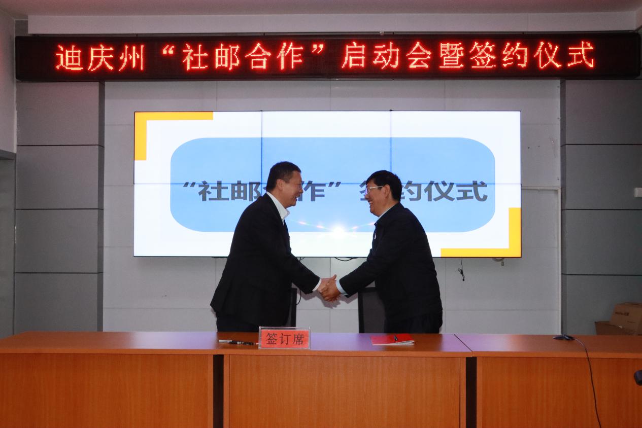 州委组织部副部长、州人社局党组书记、局长农布,迪庆州邮政分公司总经理等“社邮”双方相关领导参加签约仪式。
