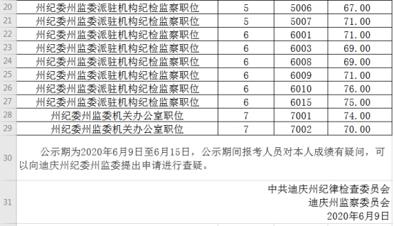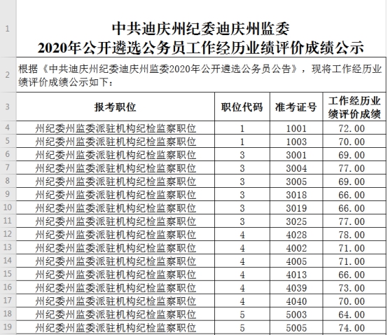 中共迪庆州纪委迪庆州监委2020年公开遴选公务员工作经历业绩评价成绩公示