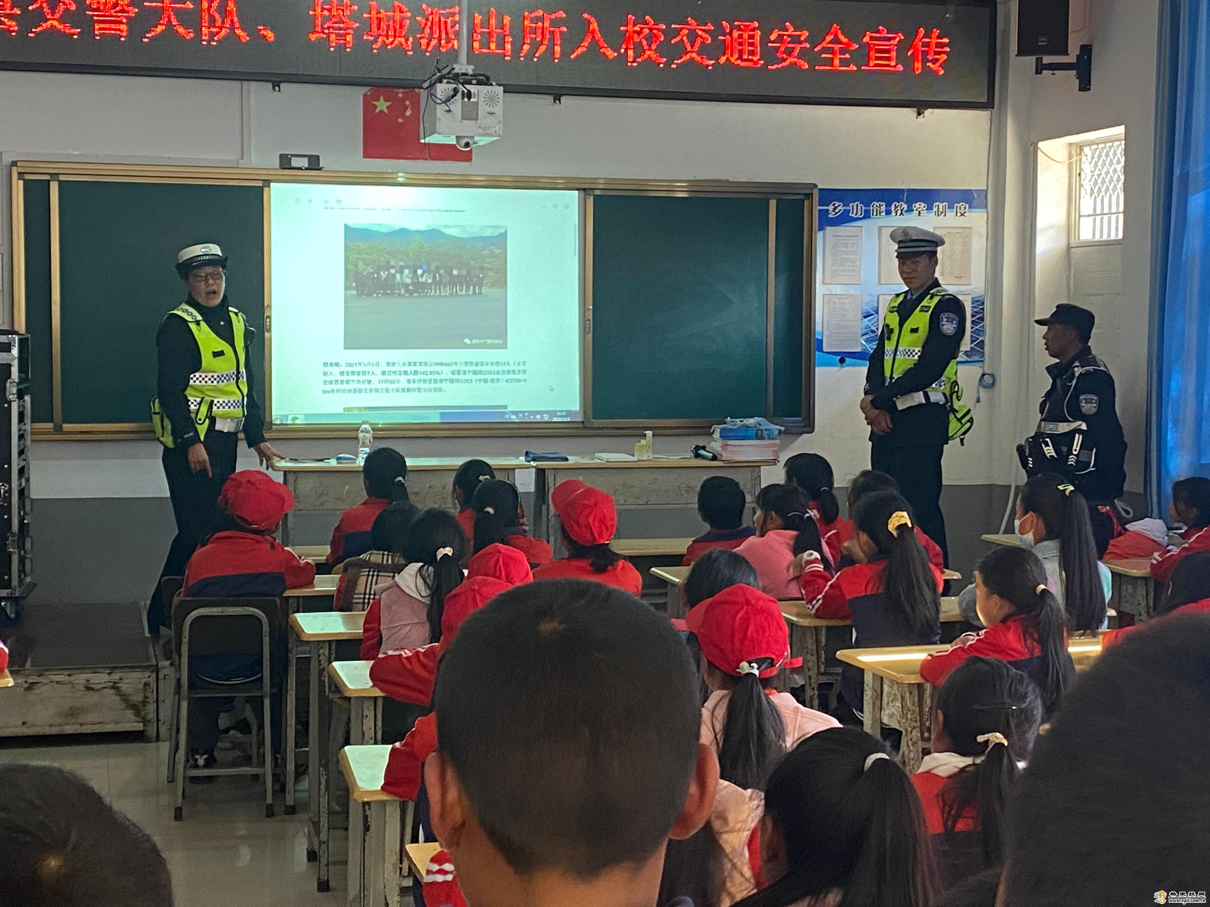 近日,为有效预防和减少各类道路交通事故发生,确保辖区交通安全形势持续平稳,维西县公安局塔城派出所紧紧围绕当前季节特点,通过细化应急预案、推进隐患整改、突出路面整治、落实路段承包责任制、加大交通安全宣传力度等举措,全面掀起冬季交通整治行动新高潮。图为塔城派出所民警到辖区学校发放交通安全宣传资料,引导学生注意交通安全。(杨杰 李国忠 摄)