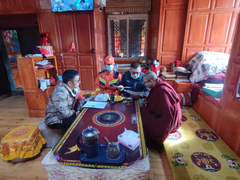 松赞林寺“支部互联共治24小时巡逻服务队”是由香格里拉市松赞林寺管理局、尼旺宗派出所、松赞林景区公司、尼旺宗消防救援站在职党员共同组成的一支维护寺庙和谐稳定的重要力量,承担着寺庙政策法律宣传、矛盾纠纷劝调、隐患排查化解等工作职责。自“防风险、保安全、强发展”专项活动开展以来,服务队的工作变得更加忙碌起来,只要僧人需要的地方,总会出现他们的身影。“过去我们有什么困难问题都需要自己想办法,现在只要告诉服务队,他们就会积极帮助我们解决。”僧人叁吉丹珍说。今年初松赞林寺还挂牌成立了寺庙矛盾纠纷及困难问题诉求室,将解决僧人诉求和矛盾纠纷作为寺庙常态化工作机制,确保僧人困难诉求有人了解,矛盾纠纷有人化解、隐患问题有人排解。