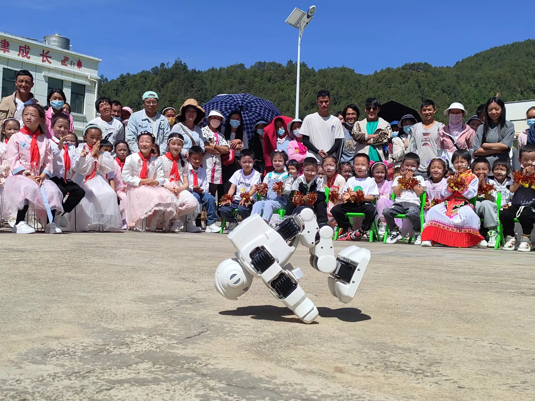 活动中,维西县科协给全校师生展示了高科技机器人以及无人机等高科技产品,机器人行走、翻跟头、踢足球、做俯卧撑等动作吸引着孩子们的目光。通过科技产品展示你,让孩子们感受到了科技的力量,进一步增强了学生对科学的兴趣,也给孩子们种下了一颗热爱科学的种子,同时更激发了少年儿童从小“爱科学、学科学、用科学”的热情,为培养学生的创新意识和创造能力打下了基础。