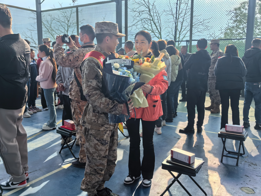 “参军入伍是我从小的梦想,今年我毅然报名应征,经过体检政考、役前教育层层选拔,光荣地被批准入伍。此刻,能够胸戴红花和战友们共同开启军旅生涯,我热血沸腾,心情无比激动和自豪。进入军营我定将热血挥洒在实现强军梦的伟大实践中,在军营这个大熔炉里淬炼成钢,书写绚烂、无悔的青春篇章。”入伍新兵李鹏院激动地说道。