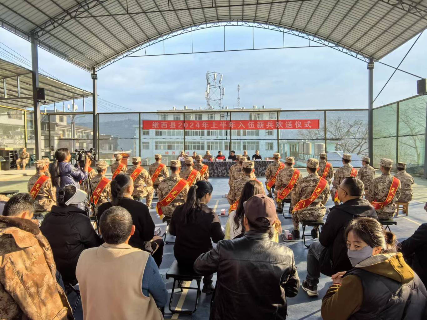 在新兵欢送仪式上,维西县四套班子领导代表为新兵授予绶带、佩戴红花,并引导新兵们坚定理想信念,厚植爱国情怀。
