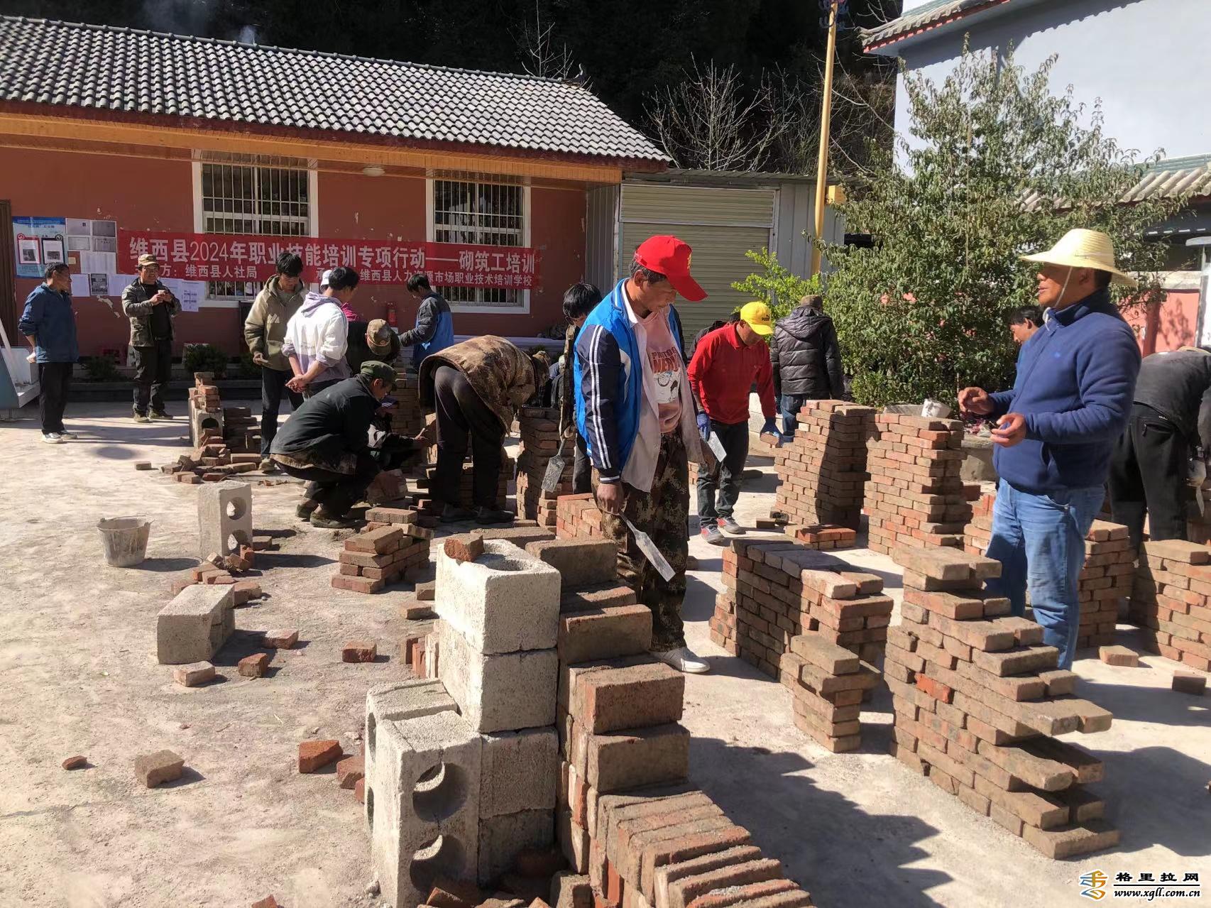 据悉,今年,维西县人社局把职业技能培训作为工作重点,将面向维西县外出务工返乡劳动力、有就业能力和就业意愿的农村劳动力群体开展职业技能培训,提升就业水平和职场竞争能力。图为参训人员正在学习砌砖。