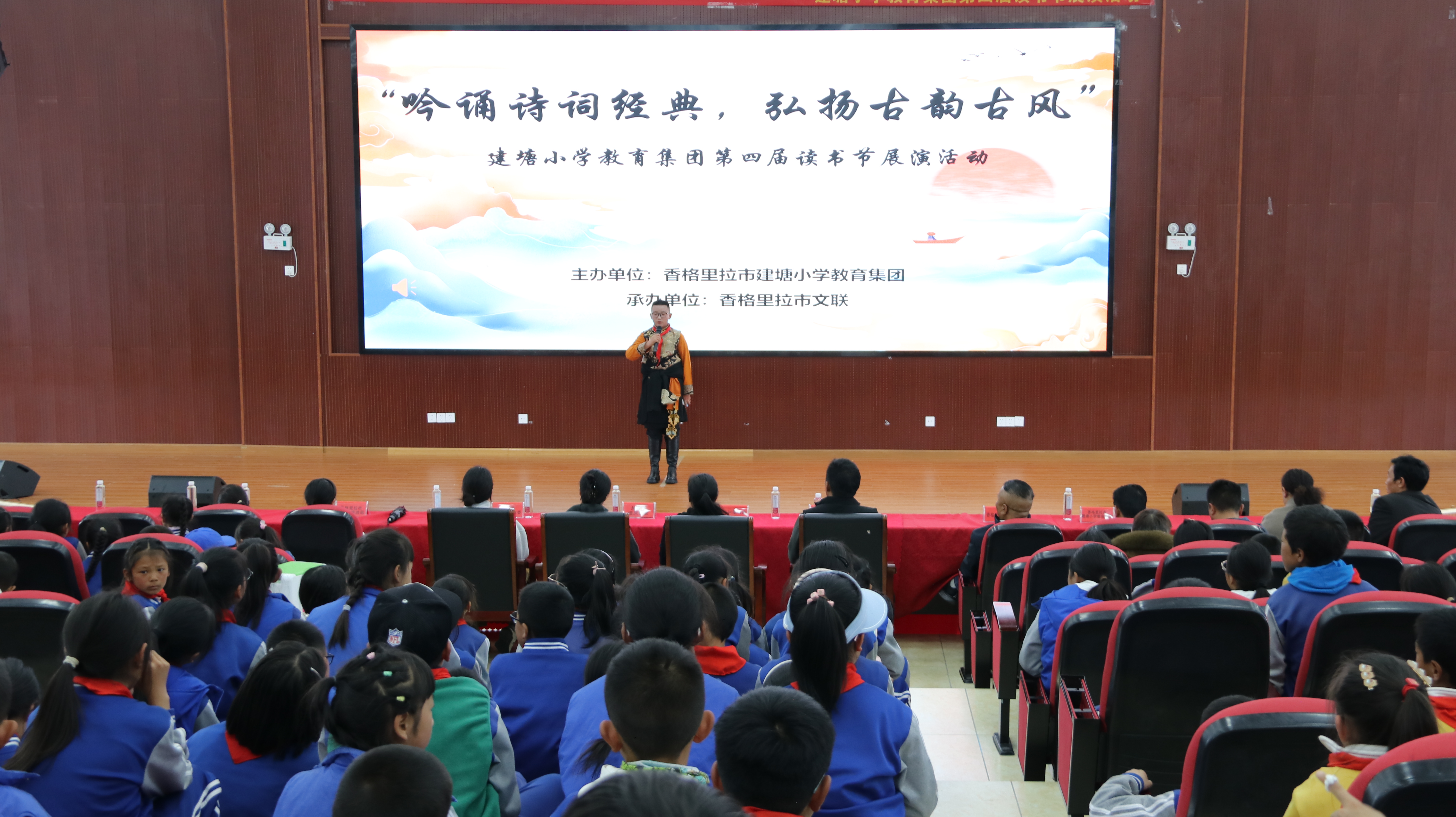 4月23日,香格里拉市建塘小学教育集团以“吟诵诗词经典,弘扬古韵古风”为主题,举办第四届读书节展演活动。活动现场,学生们化身诗词小达人,用精彩的表演诠释古诗词的丰富内涵。一个个精彩的节目轮番上演,或慷慨激昂,或婉转悠扬,让该校学生接受了一次传统文化的洗礼。