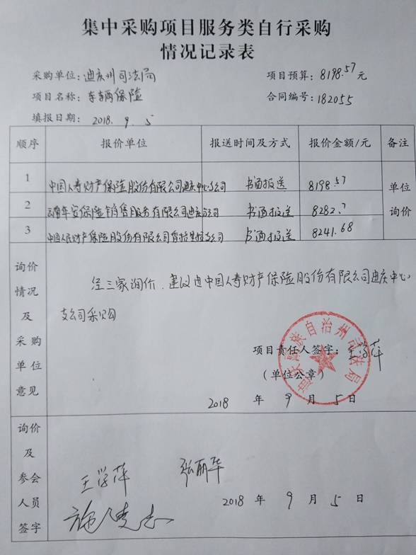 【财政经费】迪庆州司法局集中采购项目服务类自行采购情况记录表