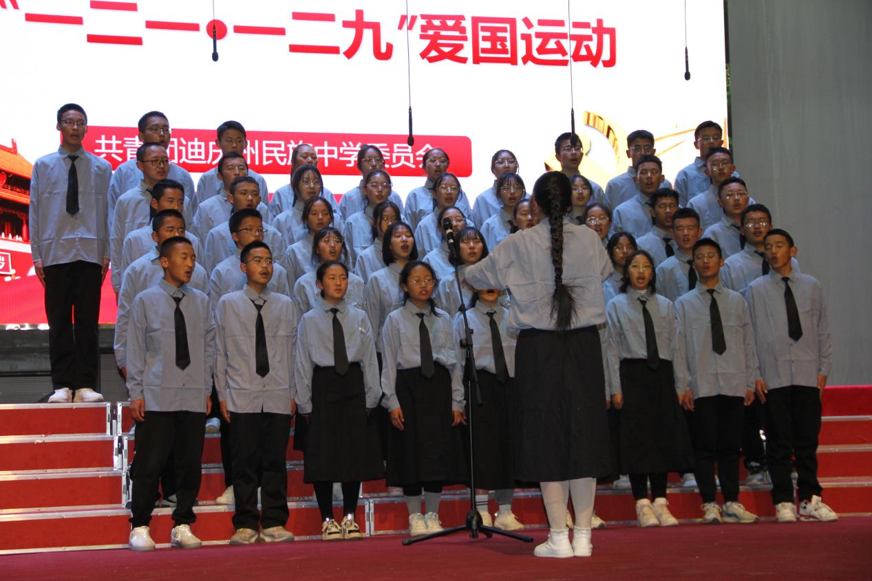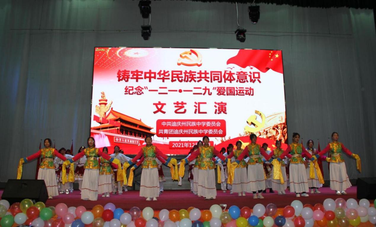 10日晚,高二年级组表演了精彩的文艺节目。235班带来的民族舞《军民一家亲》让我们一同回到人民解放军解放西藏时的革命岁月,一起感受那浓浓的军民鱼水情。神州大地繁花似锦,祖国长空长乐曲如潮,一百年见证了一个国家的繁荣昌盛,吾为中华天堑无涯,山河无恙,吾国万疆。高230班中国舞《万疆》以悠扬的歌声将古典意境与中国韵味表现得淋漓尽致......一曲曲动人的旋律,一首首熟悉的歌曲,唤起全校师生对那段峥嵘岁月的追忆,点燃了师生们浓浓的爱国热情,唱出了新时代中学生积极乐观、拼搏奋进的良好精神风貌,来自高一258班的曲目《大中国》和高二240班的民族舞《和谐迪庆,永念党恩》更是点燃了现场气氛将晚会推向高潮。