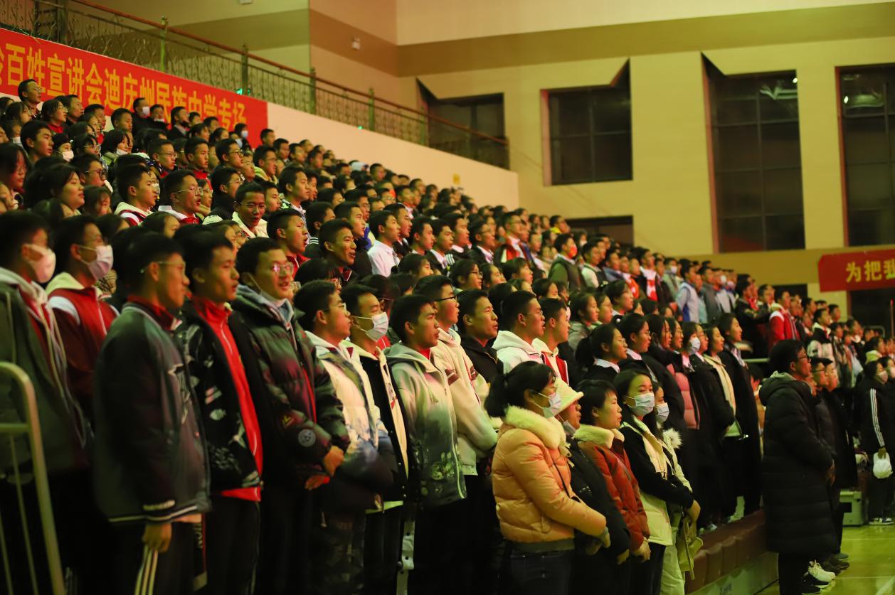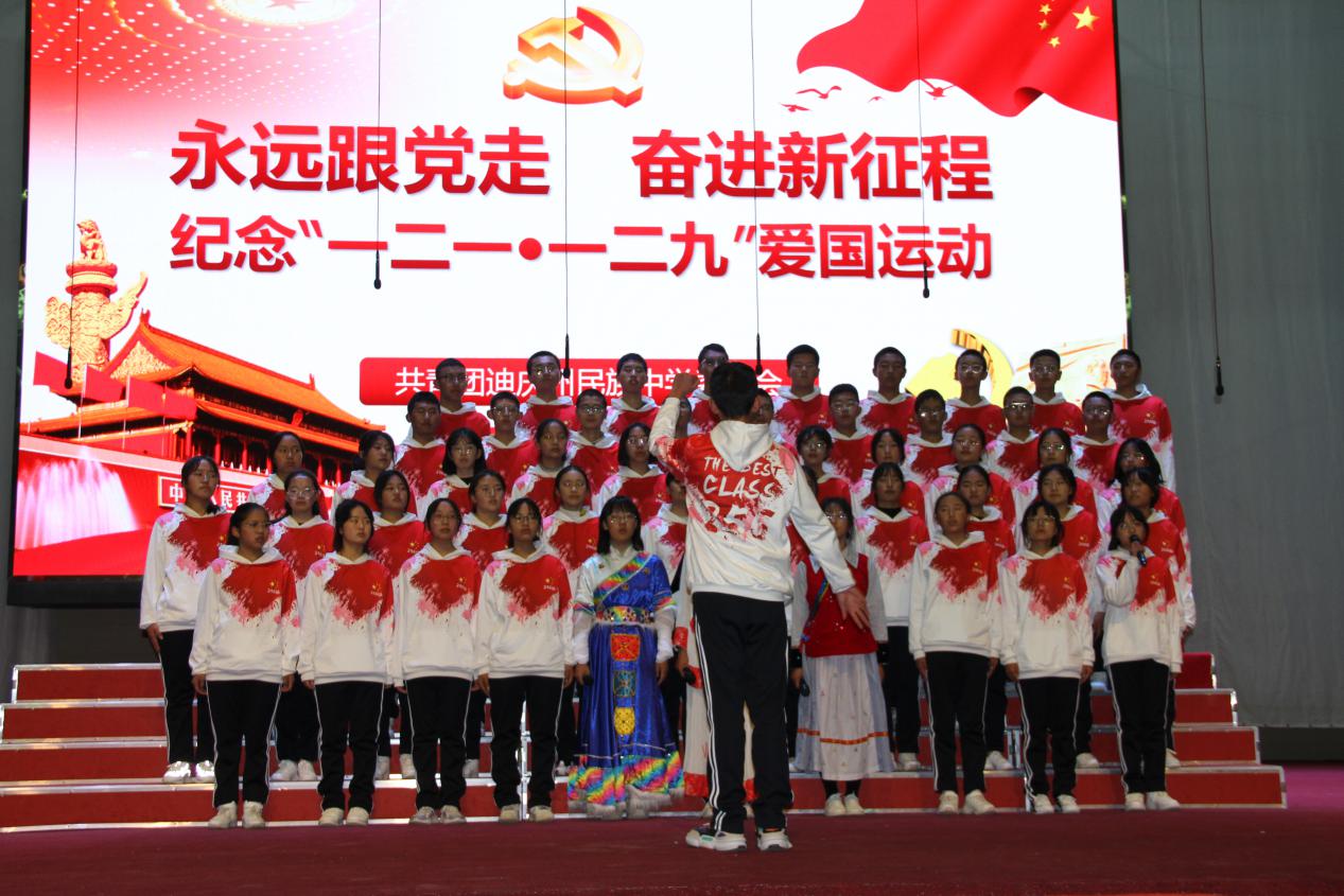 比赛开始前,校长和继福致辞,他希望同学们,以最美丽的笑容、最过人的胆识、最曼妙的舞姿、最精湛的演技、最真挚的情感、最羡煞旁人的朝气纪念“一二·一、一二·九”学生运动,赓续红色血脉,铸牢中华民族共同体意识。让我们共同凝聚在中华民族的旗帜下,像石榴子一样紧紧抱在一起,共同构成你中有我、我中有你、谁也离不开谁的中华民族命运共同体,以中华民族伟大复兴为己任,为创建民族团结示范区的标杆和世界的香格里拉而奋斗!为成为德智体美劳全面发展的社会主义建设者和接班人而奋斗!为实现中华民族伟大复兴的中国梦而奋斗!