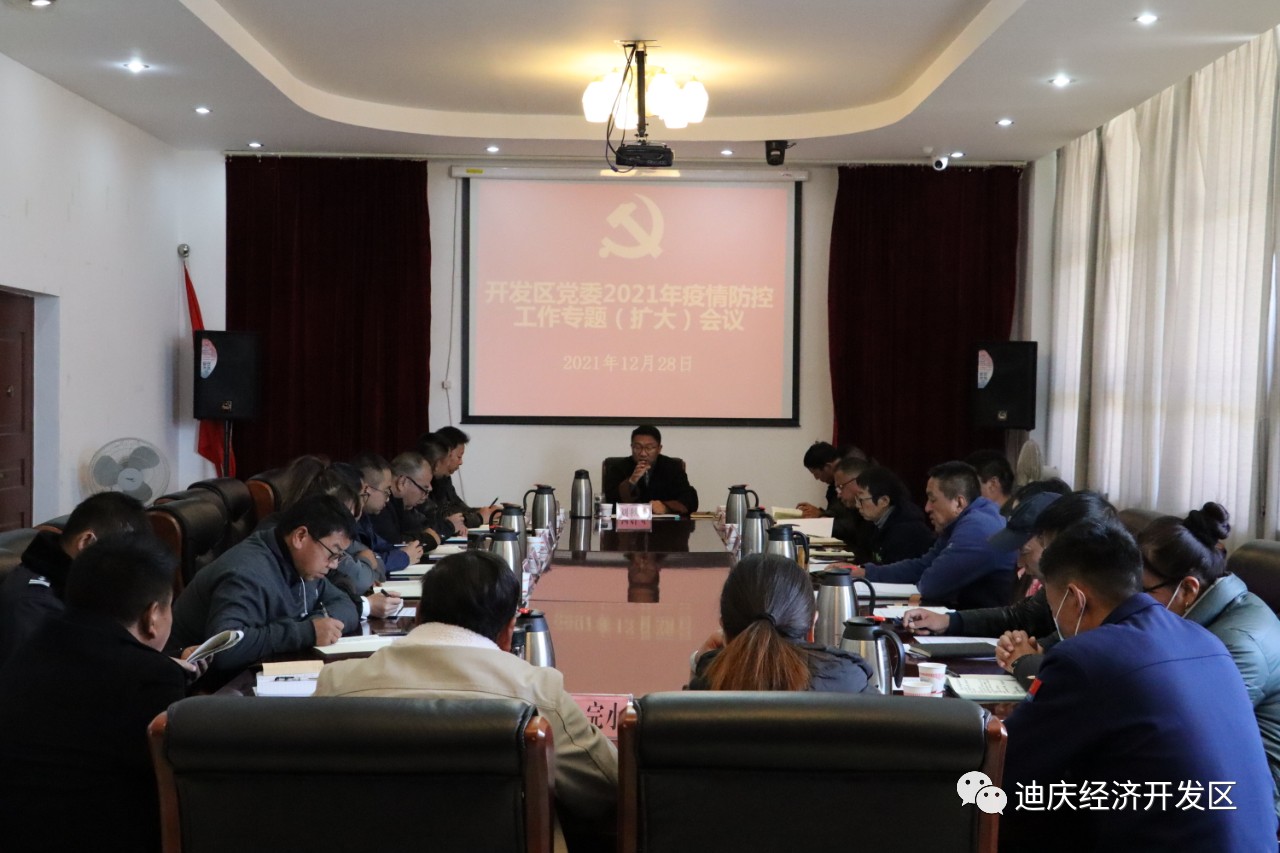 12月28日,迪庆香格里拉经济开发区召开2021年党委专题会议,传达省、州疫情防控工作视频调度会议精神和各级领导讲话要求,听取开发区党委班子成员近期疫情防控工作情况汇报,并对全区疫情防控工作进行再安排、再部署。