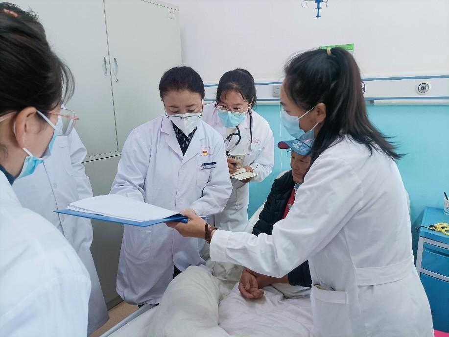 北京藏医院索金兰副主任医师(中间)在迪庆州藏医院开展带教查房