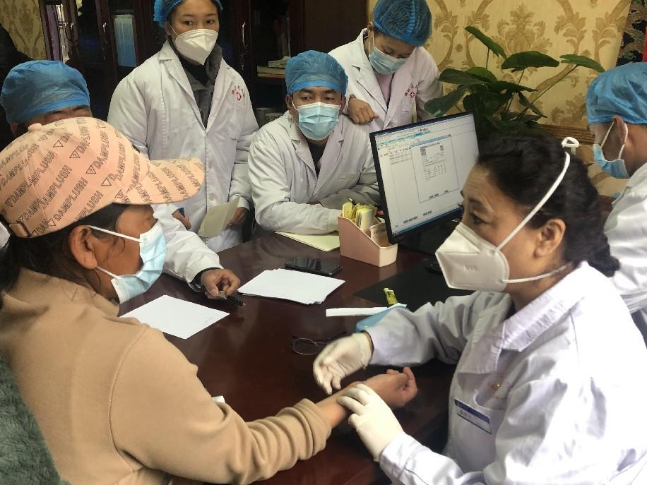 北京藏医院索金兰副主任医师(右一)在德钦县人民医院开展义诊