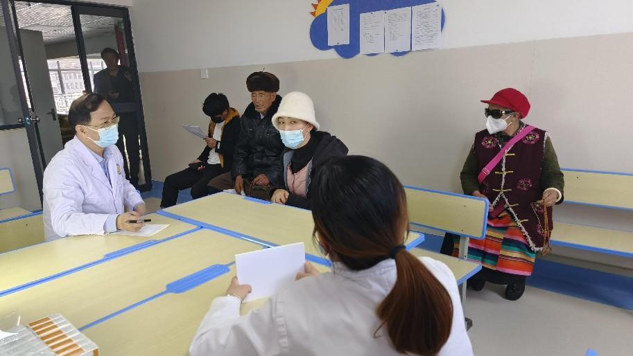北京协和医院副主任医师陈太波(中间)在德钦县人民医院开展义诊