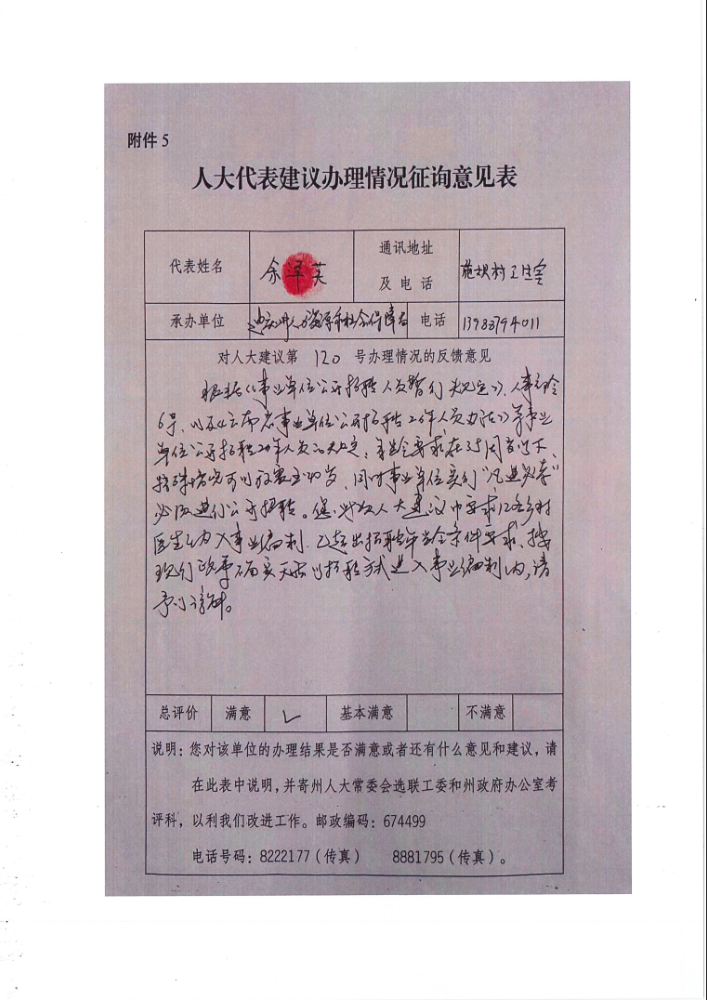人大建议办理结果公开