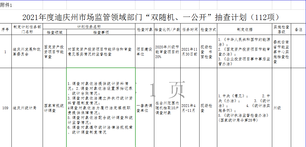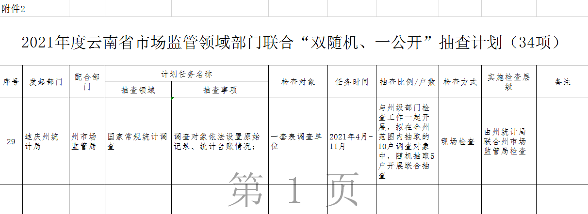 迪庆州统计局2021年“双随机、一公开“抽查计划