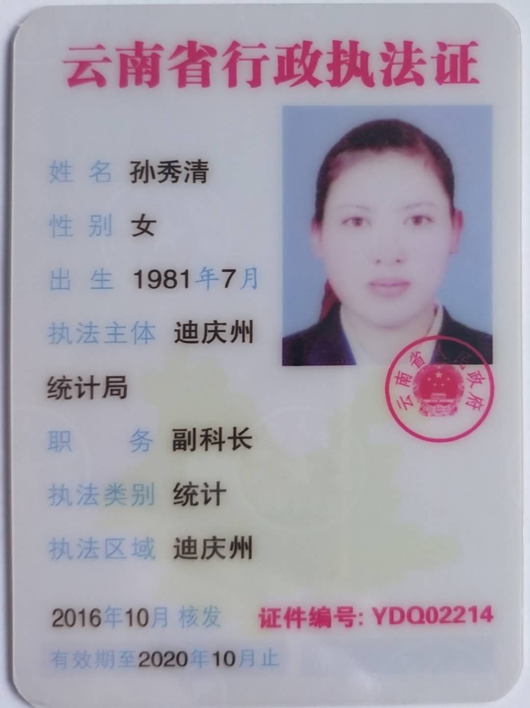 【行政执法和行政强制】迪庆州统计局行政执法人员执法证公示