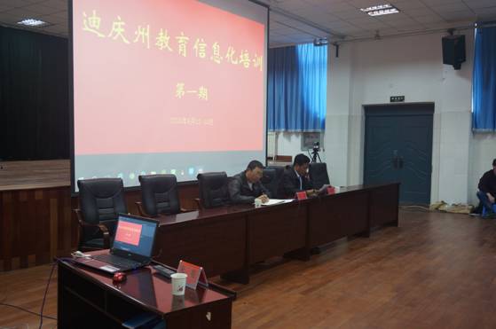 2016年6月13日—14日由迪庆州教育局统一组织全州教师在迪庆州民族中学南校区北报告厅开展迪庆州教育信息化专家讲座+应用培训。培训由迪庆州教育局督导主任习云主持,并有迪庆州教育局专职副书记和彦华发表重要讲话。
