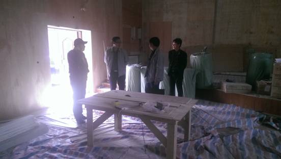 在对州级智能控制中心的巡检过程中,冯金祥局长对地板安装情况进行仔细检查,同时对门是否是实木的进行询问,对暖气散热片的装饰和灯光效果给予的肯定。