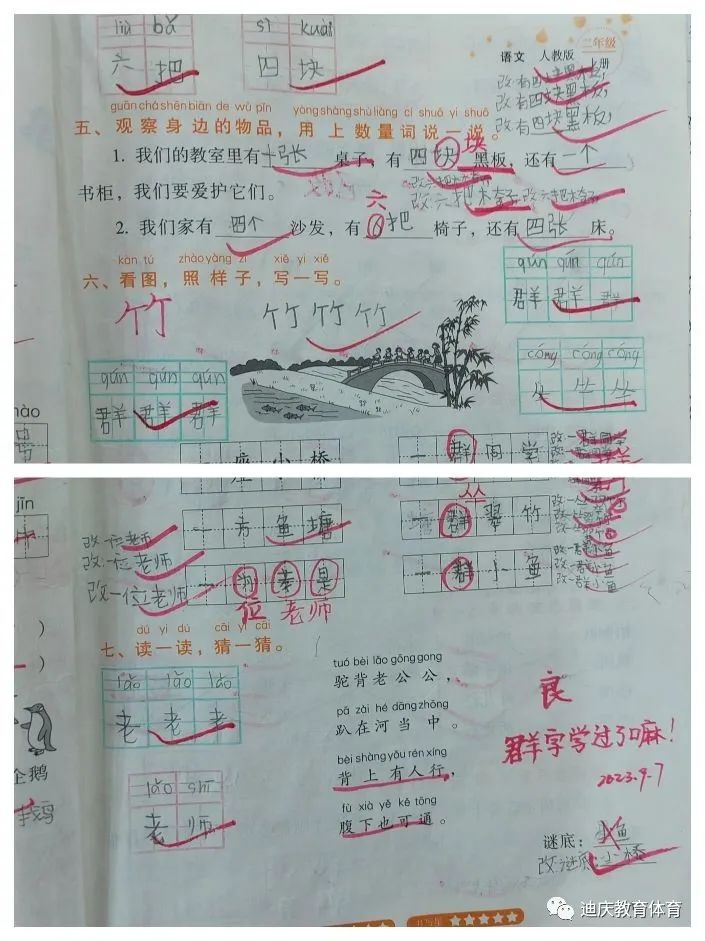 2023年9月23日下午, 教学常规检查小组对全校教师作业合理合规的布置、作业批改的记录、单元检测分析等常规工作,进行了检查。老师们能同步布置作业,作业批改认真及时,并能给予鼓励性的评语。
