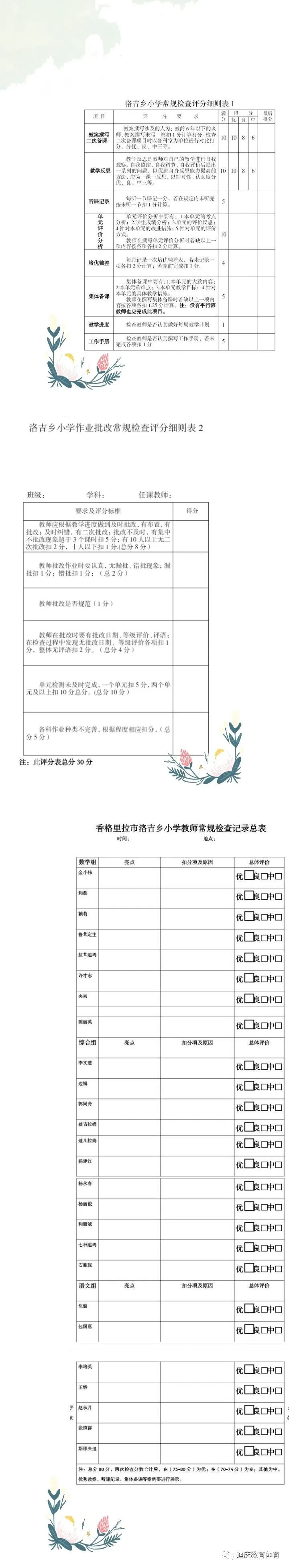 为了进一步强化本校教育教学管理,夯实学校教学常规管理工作,促进教师教学素养的提升,洛吉乡小学教研组以学校教学常规检查方案和实施细则为根据,教学常规检查小组全体成员,邀请了各教研组一名普通教师对我校教师作业的布置与批改、单元检测分析、教案、集体备课、教师工作手册等常规工作,进行了检查。此次教学常规检查分两个时间段进行。2023年9月23日的常规检查,针对教师的作业批改、单元检测质量分析进行。2023年9月27日的常规检查针对教案、集体备课、教师工作手册进行。