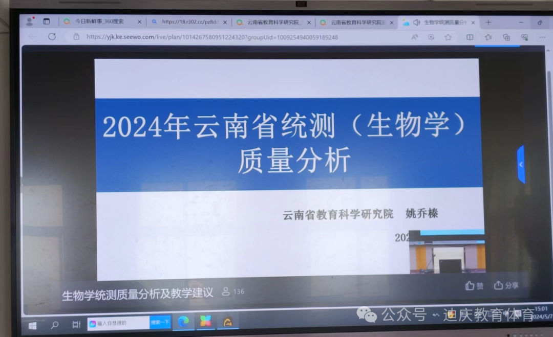 为进一步精准把握学情,明确教学方向,有效提高质量检测时效性,做好2024年云南省两次普通高中毕业生复习统一检测质量分析工作,切实发挥统测数据应用的效益,帮助教师了解高三学生的学习情况,科学有效地开展复习教学,增强2024年高考的适应性,我州4所高中参加了云南省普通高中毕业生复习统一检测质量分析远程培训。