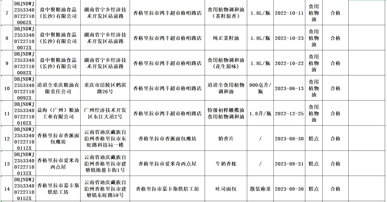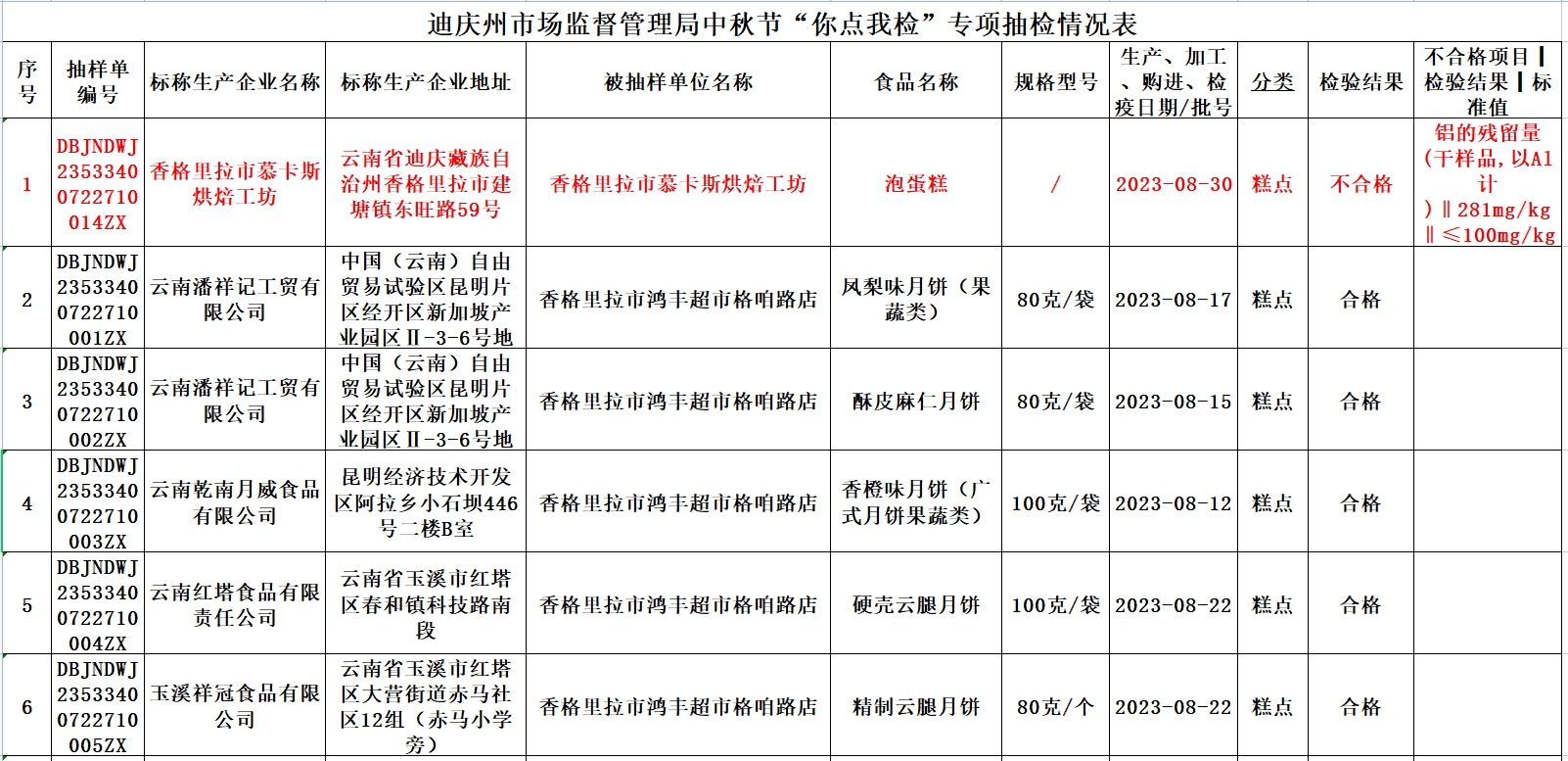 附件:迪庆州市场监督管理局中秋节“你点我检”专项抽检情况表