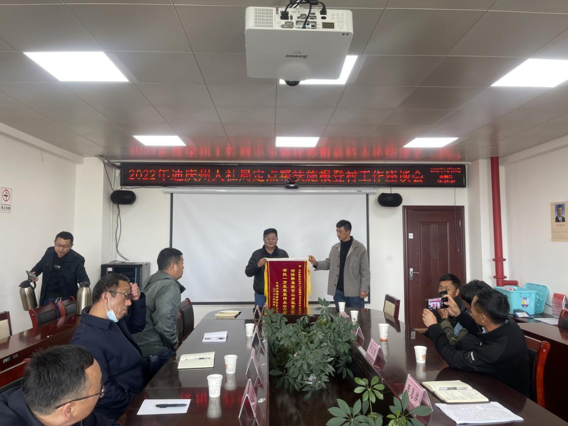 会上由施根登村党总支书记向人社局党组做工作汇报,汇报指出:自2019年州人社局挂包施根登村以来,人社局不断强化责任担当,狠抓工作落实,助推施根登村如期打赢脱贫攻坚战,后续州人社局严格落实“四个不摘”,持续发挥人社行业优势,在乡村人才培养、劳动力转移就业等方面花大功夫、苦功夫,助力施根登村巩固拓展脱贫攻坚成果同乡村振兴有效衔接。借此机会,村党总支书记代表村“两委”对州人社一直以来的帮助表示感谢,敬献“倾情精准脱贫山乡巨变 帮扶一方发展真情永驻”锦旗。