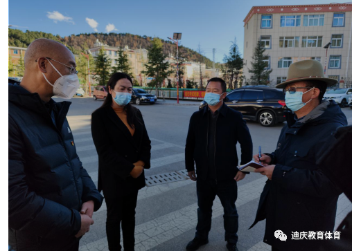 当前,我州疫情防控面临复杂性、艰巨性的严峻形势,为深入贯彻州委州政府和迪庆州教育体育局的部署安排,进一步加强学校疫情防控相关工作,2022年11月30日,迪庆州人民政府副州长余桂芬、副秘书长林维平,迪庆州教体局局长李涛、竞训科科长刘鹿一行深入校园疫情防控一线,实地了解疫情防控落实情况。余桂芬副州长一行查看州香格里拉中学学校疫情防控措施落实情况,并慰问坚守岗位的全体师生员工,听取校党委书记张志云同志情况汇报。