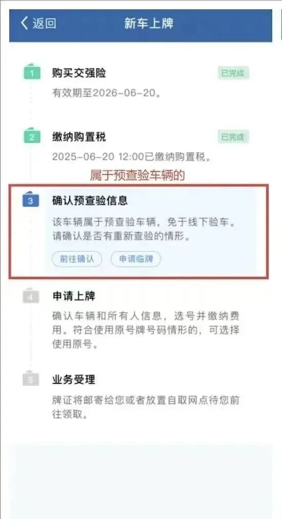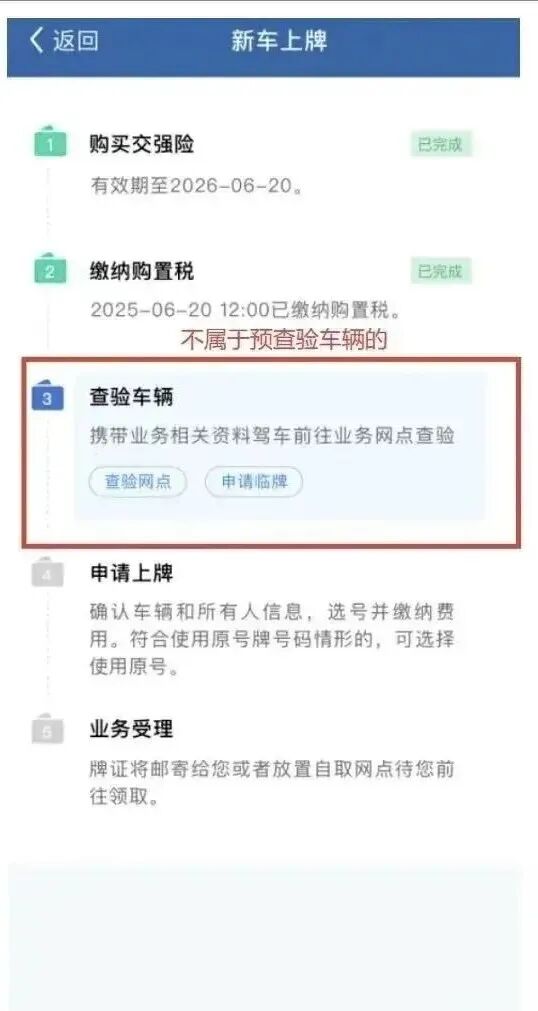 四、如果您的新车不属于“预查验”机动车该如何线上办理?