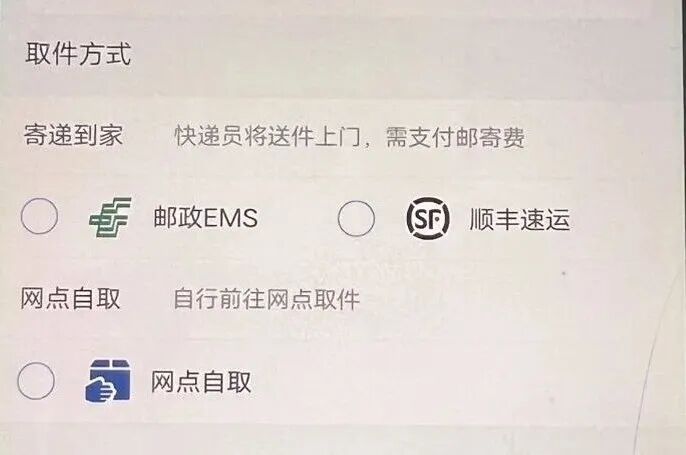 第七步:选号成功后,确认取件方式(邮寄到家或网点自取)分别支付工本费、邮费后,完成登记。
