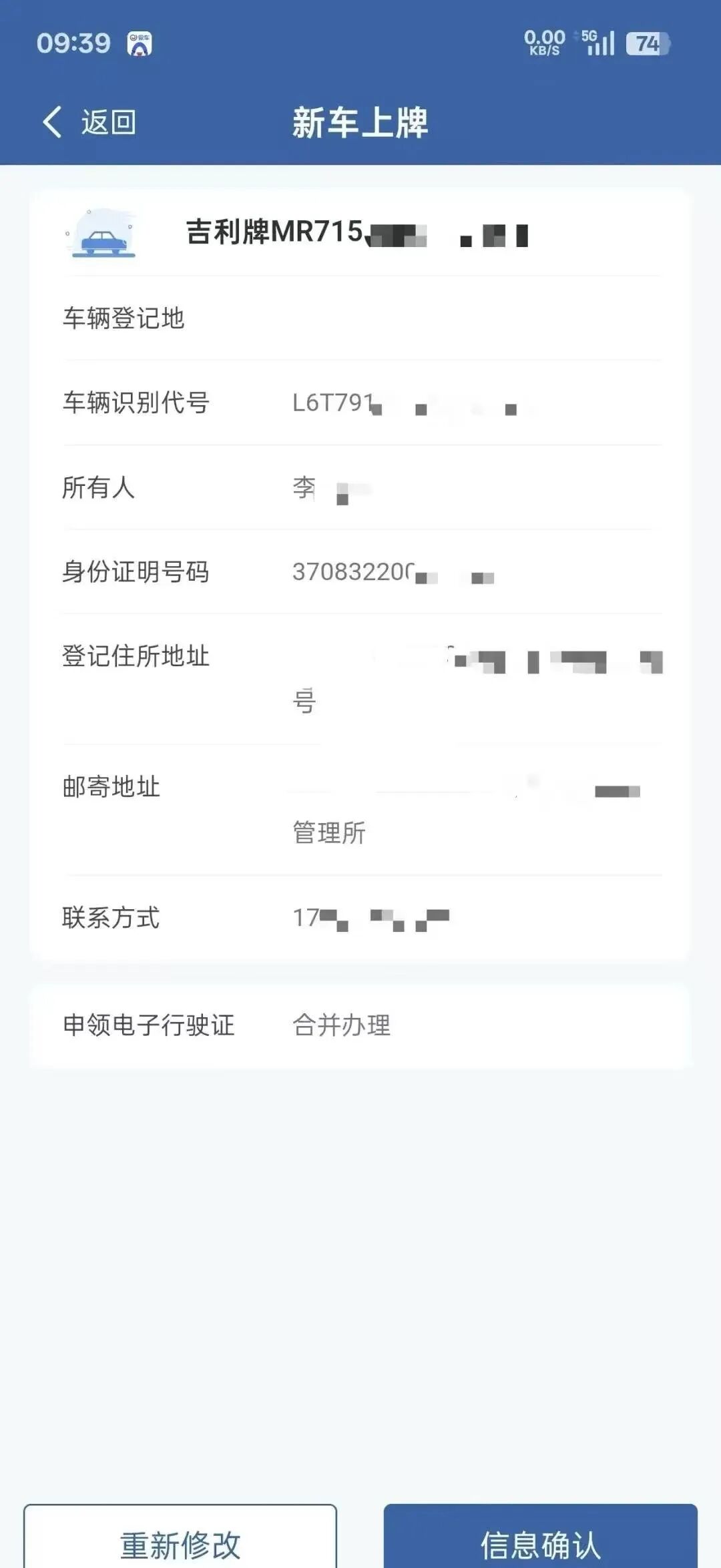 第四步:确认车辆和所有人信息,确认无误后,点击“下一步”。