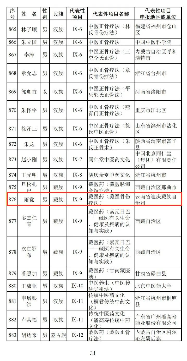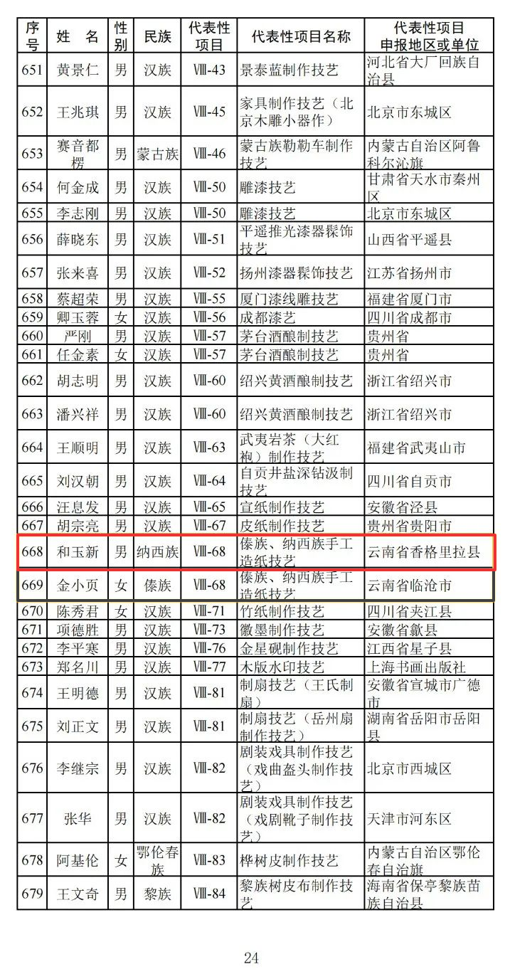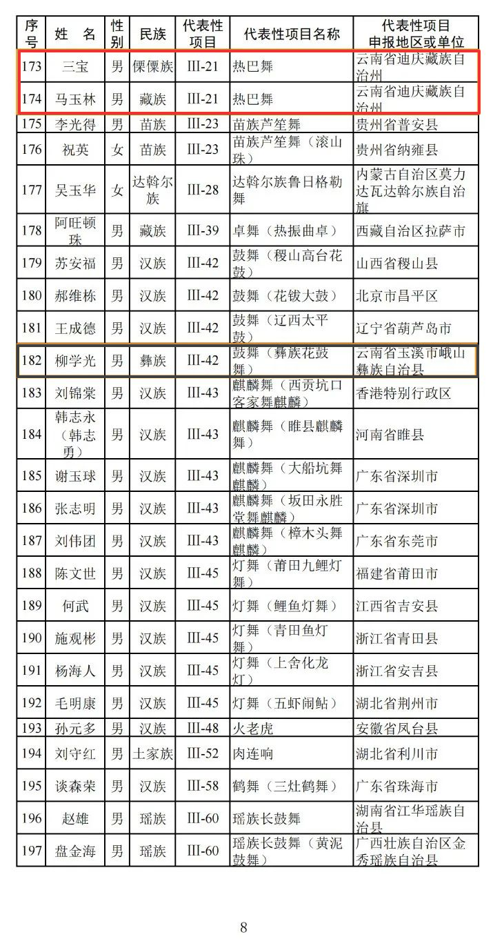 近日,文化和旅游部发布《文化和旅游部关于第六批国家级非物质文化遗产代表性传承人推荐人选名单的公示》,958人拟入选第六批国家级非物质文化遗产代表性传承人推荐人选名单。其中,云南省迪庆州三宝、马玉林(迪庆热巴舞),和玉新(傣族、纳西族手工造纸技艺),雨觉(藏医药骨伤疗法)共4人入选。公示期自即日起20日。公示全文如下: