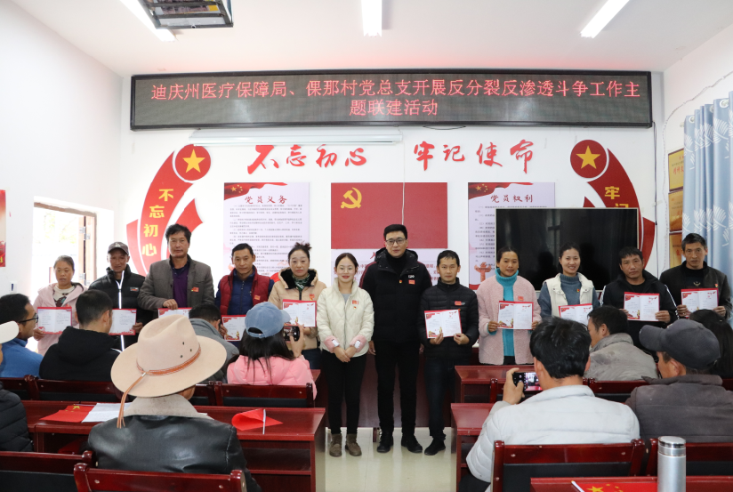 为进一步深入公开揭批十四世达赖反动本质,旗帜鲜明讲清十四世达赖的“五顶帽子”和达赖集团的“三性”,牢牢把握涉藏反分裂斗争主导权,迪庆州医疗保障局党支部组织党员代表,到维西县叶枝镇倮那村组织开展反分裂反渗透斗争工作主题联建活动。