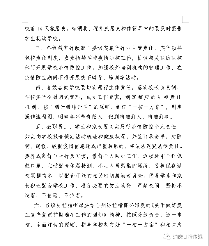 迪庆州发布第11号通告 对全州学校开学和校园疫情防控工作提出措施