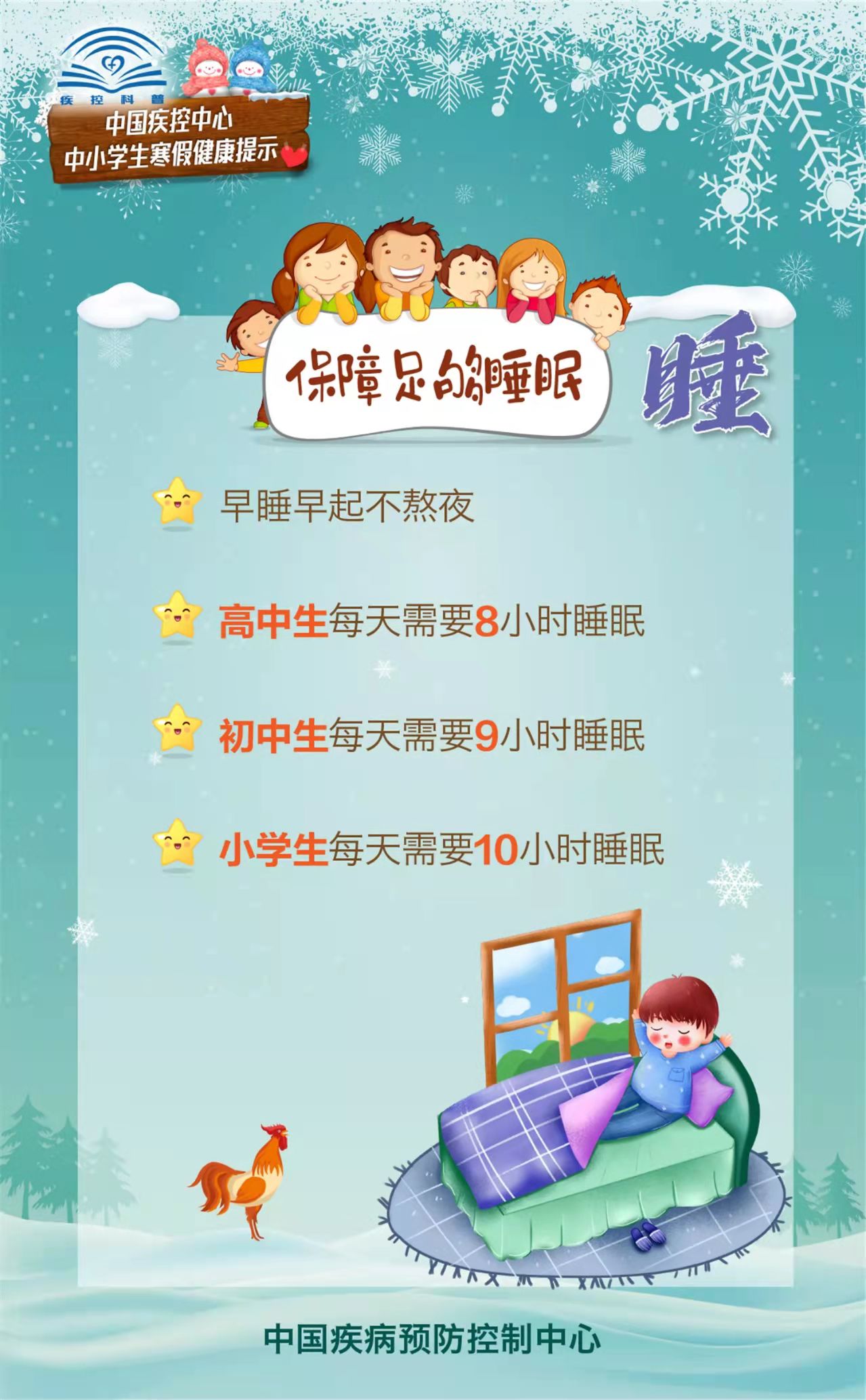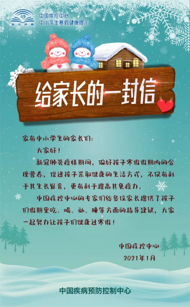 为指导家长们在疫情期间做好中小学生的寒假健康防护,促进中小学生们养成良好的健康生活方式,中国疾控中心围绕学生日常饮食、运动、学习、出行等生活起居,编制了《中小学生寒假健康提示》科普材料。